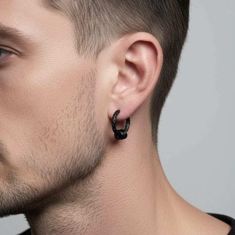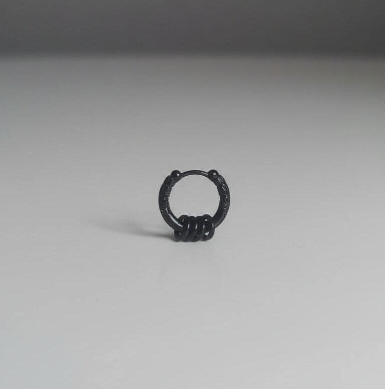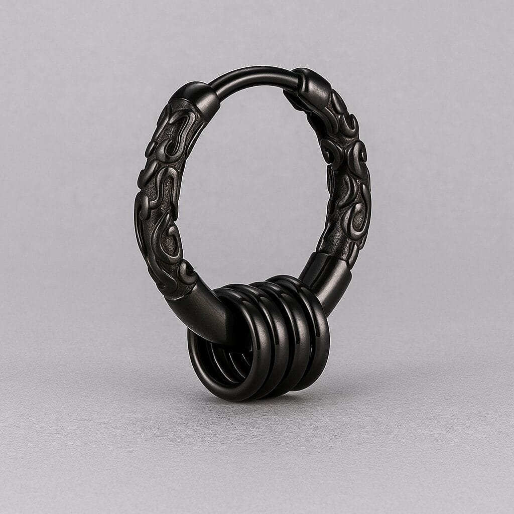 El Hoop Mystic Wisdom refleja poder, sabiduría y estilo. Un aro negro con diseño místico creado para hombres que buscan accesorios con carácter, minimalismo y una energía única.