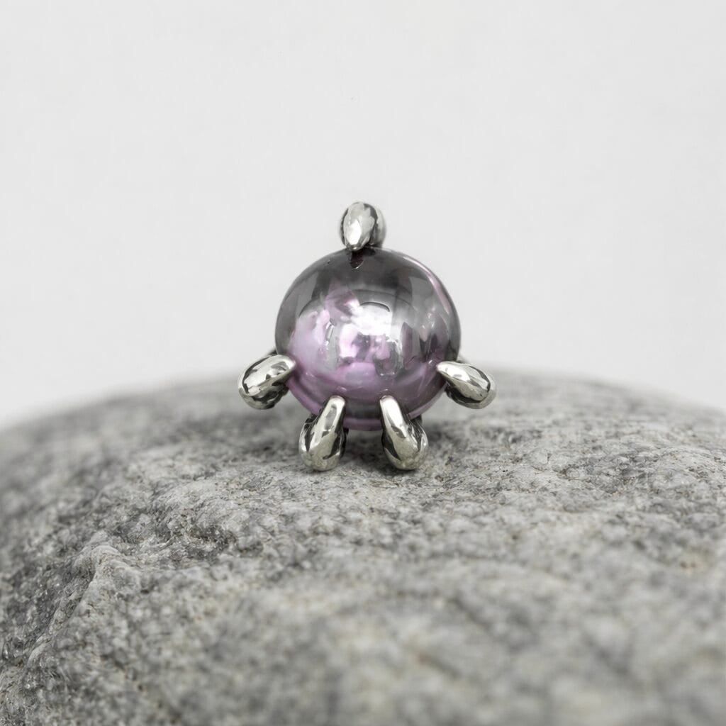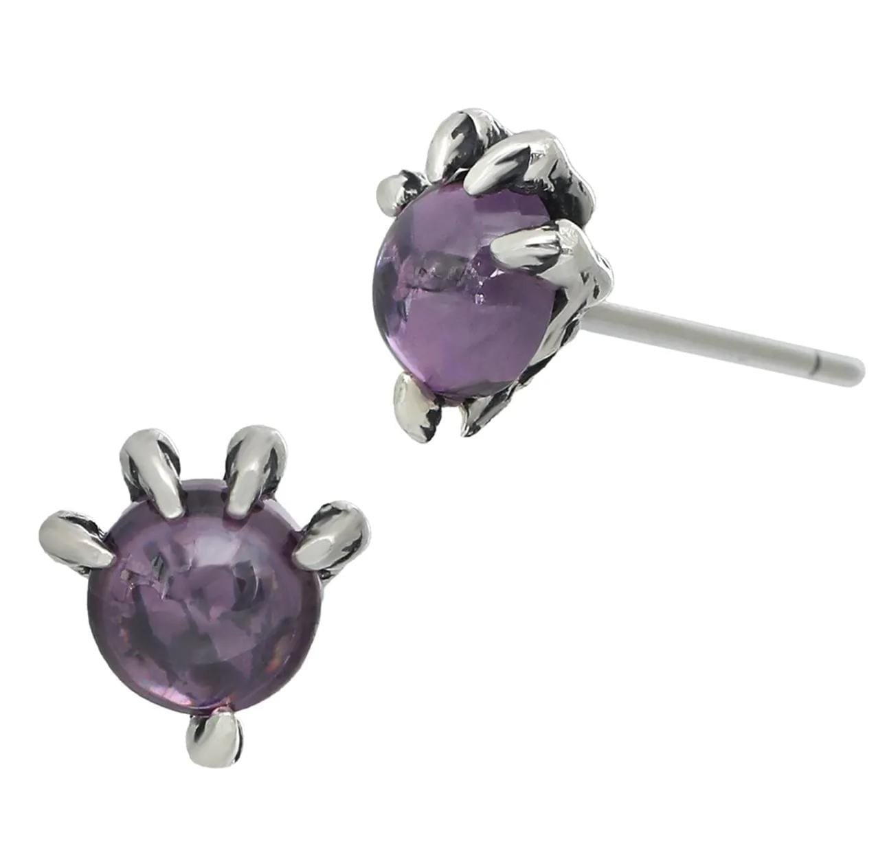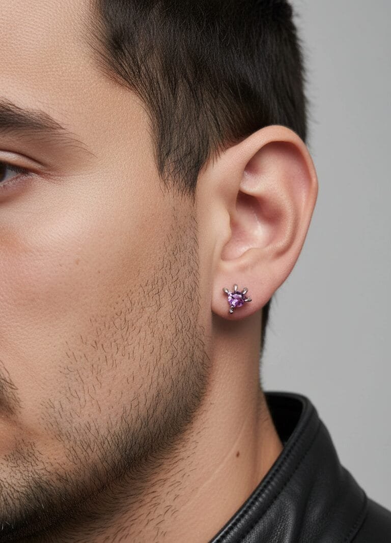 Este stud earring presenta una piedra púrpura intensa, sostenida por una estructura metálica tipo garra que simboliza fuerza, control y magnetismo. Su diseño minimalista pero agresivo lo convierte en la pieza perfecta para elevar cualquier look urbano, alternativo o dark.